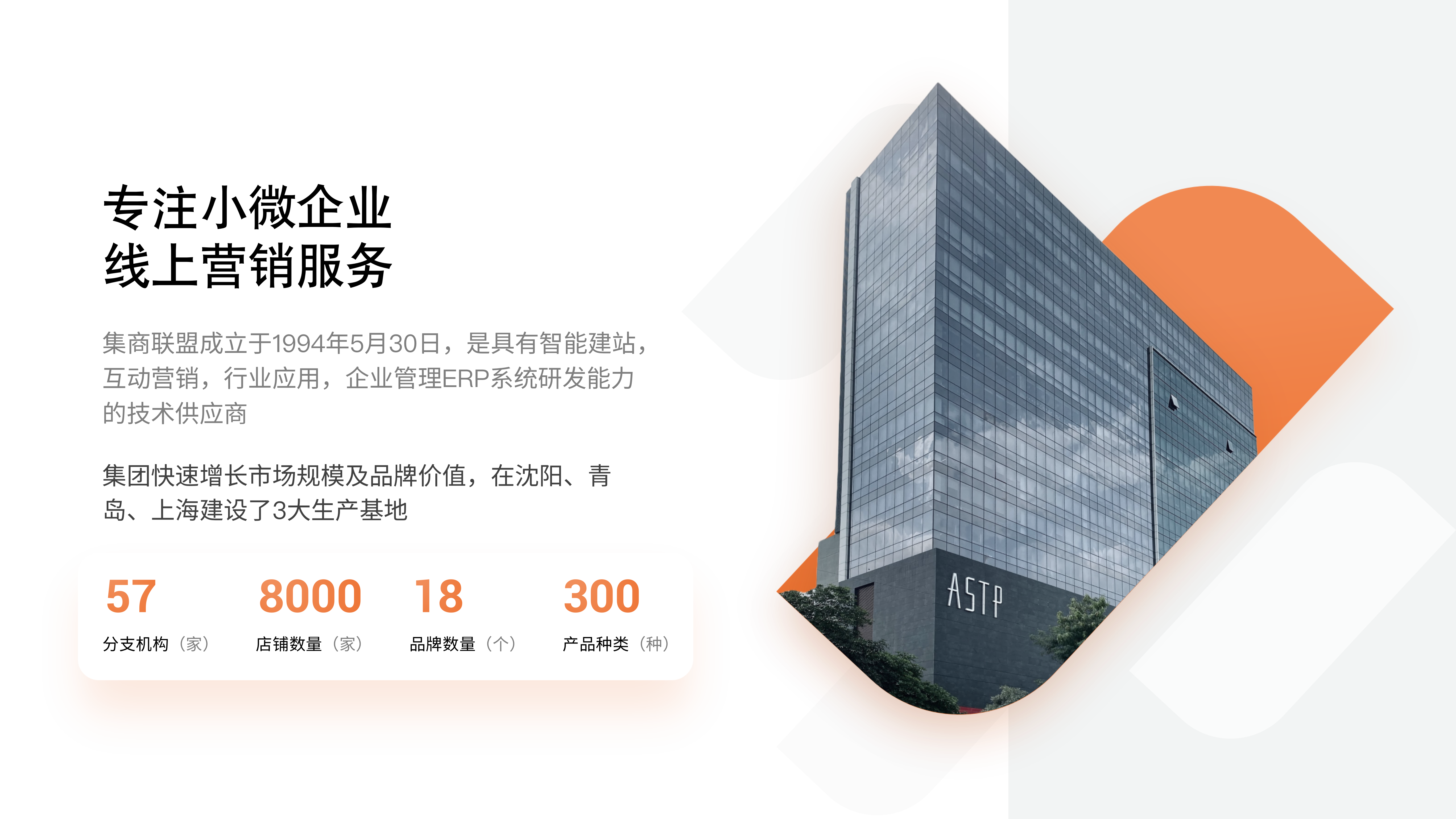 集商联盟成立于1994年5月30日,是具有智能建站,互动营销,行业应用,企业管理ERP系统研发能力的技术供应商。